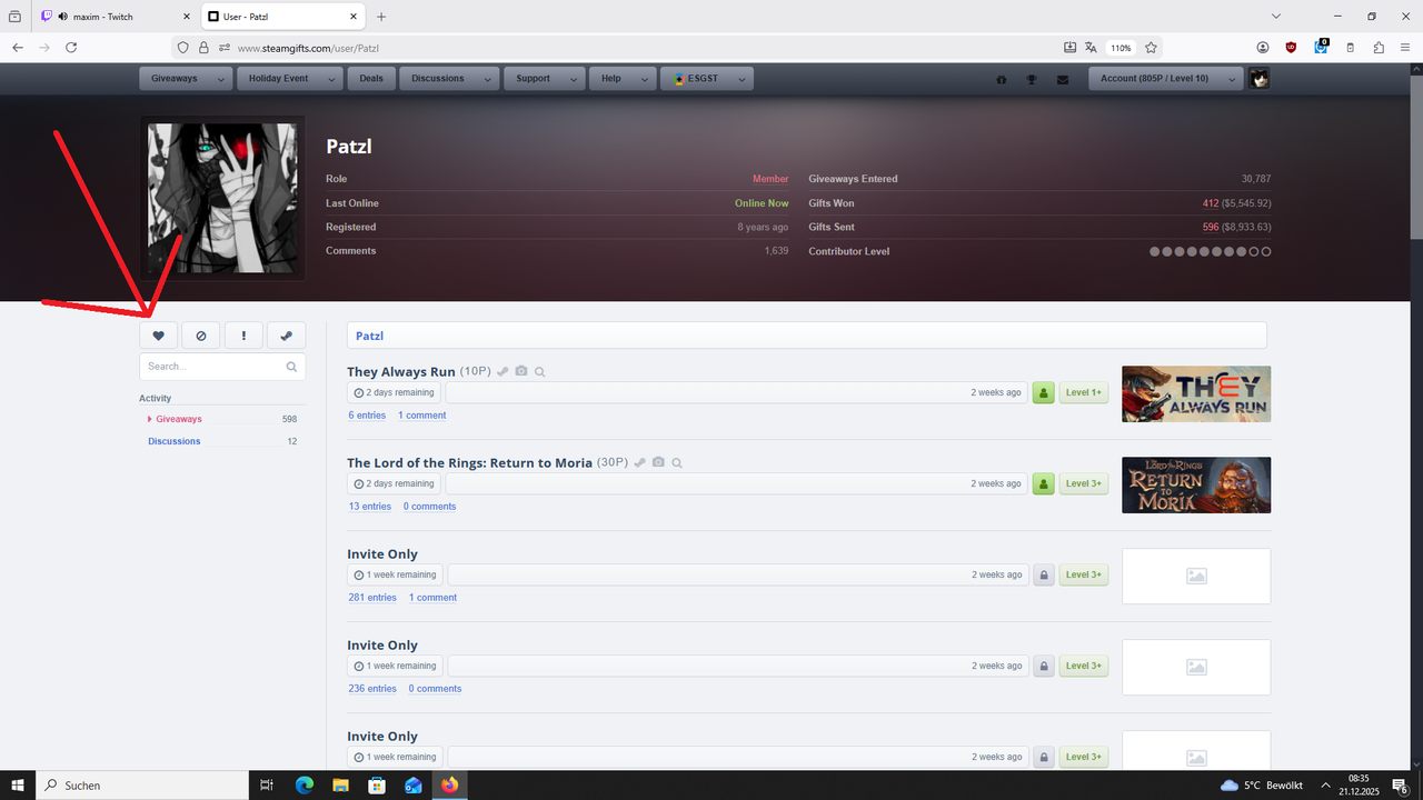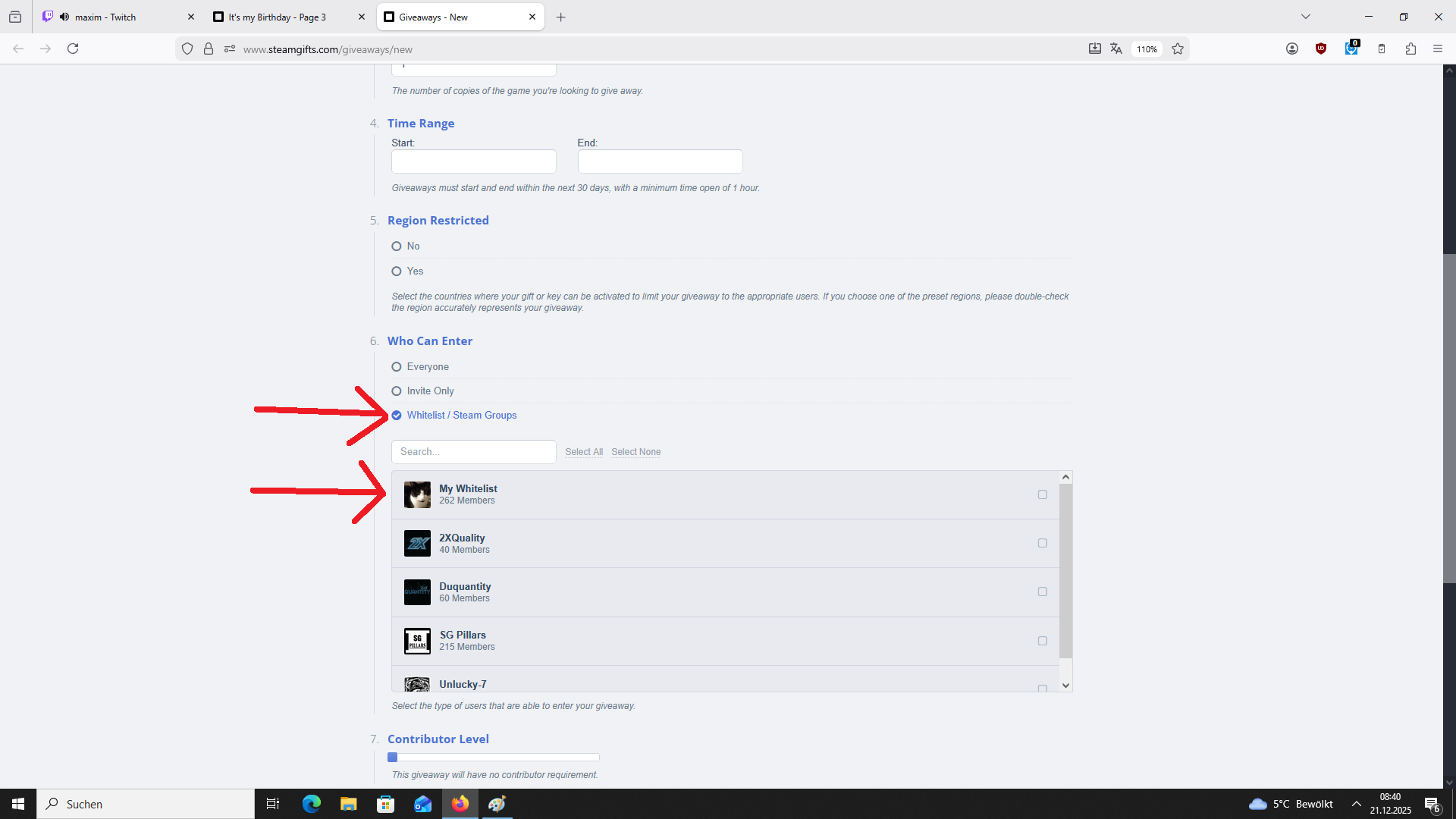 You can put other users on your whitelist (you have to go to their profile, see screenshot 1) and other users can put you on their whitelists. Reasons can be different why someone put you on the whitelist. You can do giveaways for the people on your whitelist (you can choose that when you're creating giveaways, see screenshot 2) or you can see whitelist giveaways from users who whitelisted you.