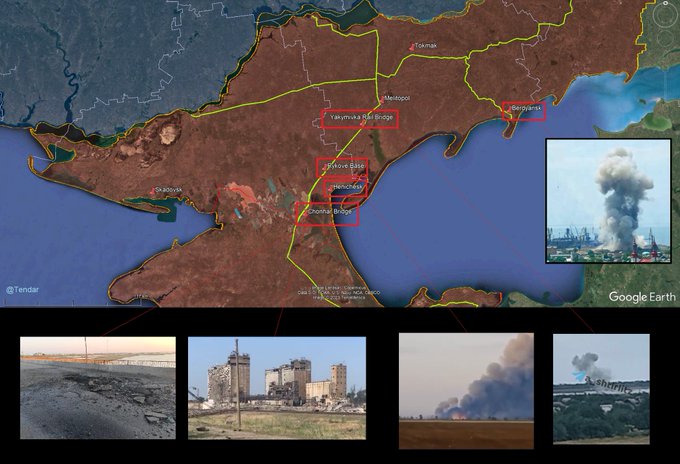 [Map on Twitter] - think it is no secret any more that one of the primary objectives of the Ukrainian counteroffensive has been the strategic decimation of Russian supply bases and vital intersections. You just have to look at the map. All major targets are along the primary supply lines and many of them are only dust now.