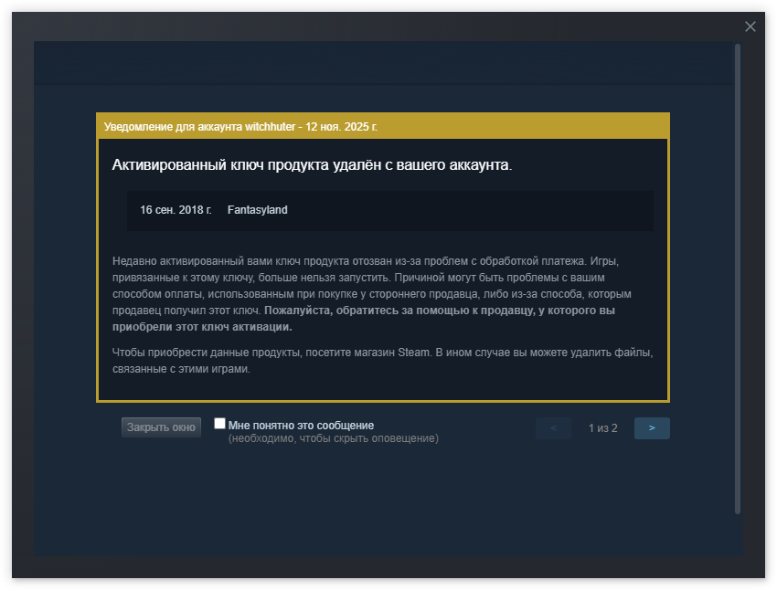 The keys for the game and DLC were retracted "due to difficulties with processing payment"