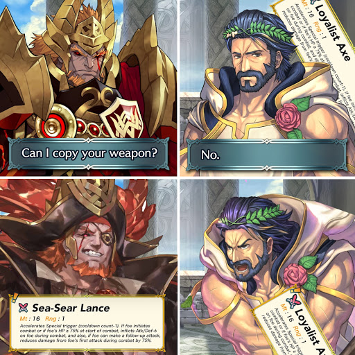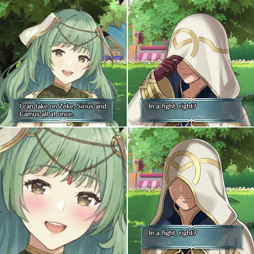 Well, it would be nice if they stuck to their own lore. There are more things that bug me about FEH. They focus too much on one character trait (like Farina, who keeps mentioning 20,000 gold, but not the actual reason she wants that amount of money) and how all characters pretend they have been summoned to my castle, despite not actually being summoned to my castle... Oh and the tap voice-lines often seem to suggest you're startling them or touching them inappropriately. I just tap on the side...