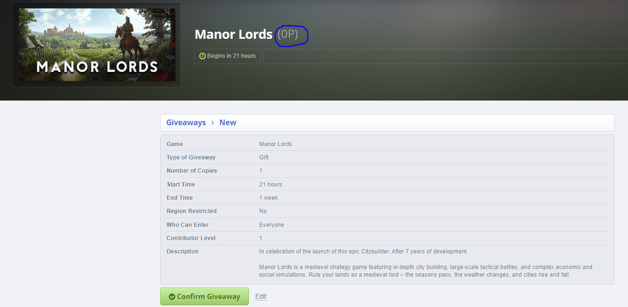 Sorry to contact you this way but, I had a follow up on my add game request (manor lords).